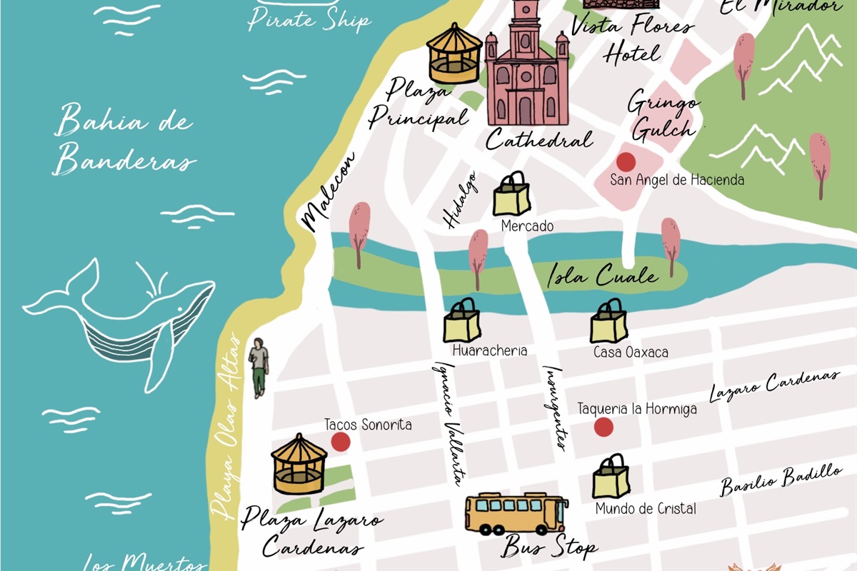Casitas Banderas is located in the heart of downtown Puerto Vallarta or El Centro, just two blocks away from the Cathedral and 2 blocks away from the malecon. The malecon is a pedestrian thoroughfare that winds along the oceanfront sided by plenty of restaurants and bars. The beach is easily a 10 minute walk or a 5 minute cab ride away. We are in the middle of plenty of restaurants, bars, shops, and galleries! Our place is right in the middle of the hustle and bustle, but it feels secluded from it all at the same time especially as you relax on the top terrace and are able to breathe in the most beautiful views of the city and ocean from above.