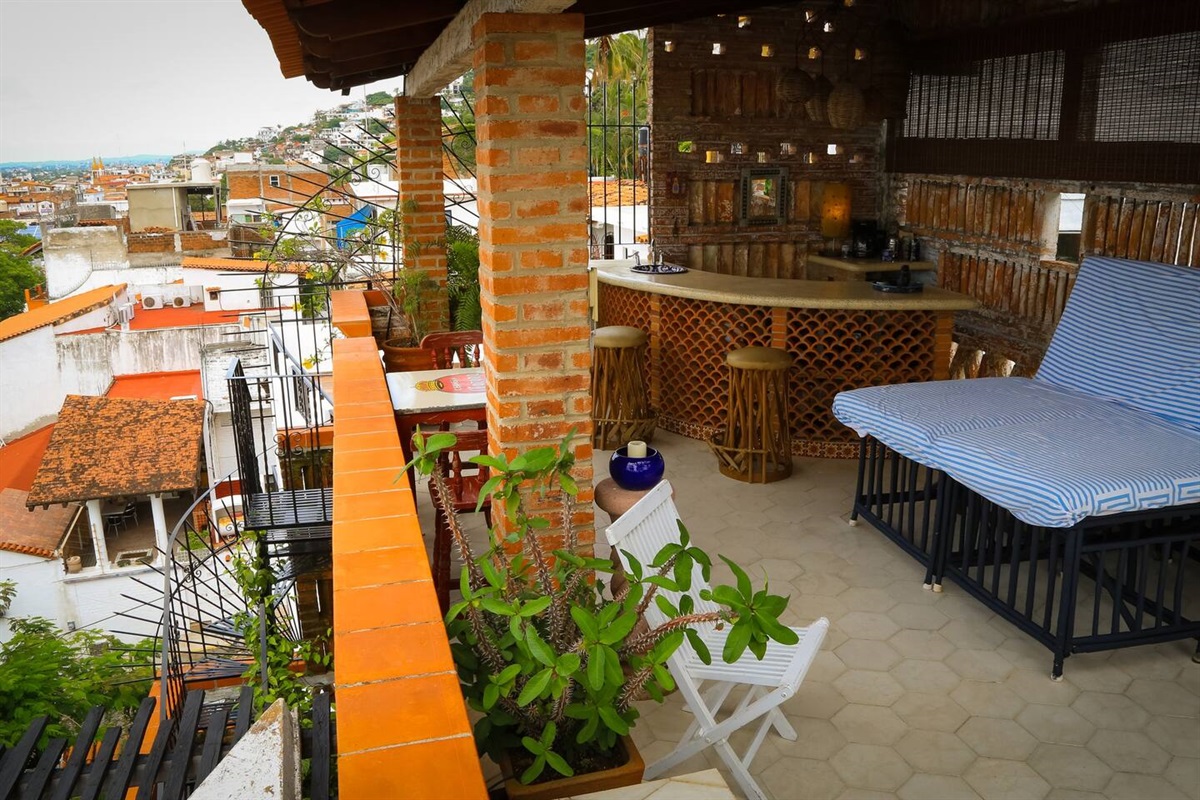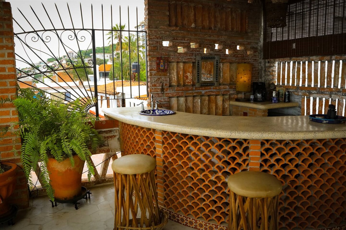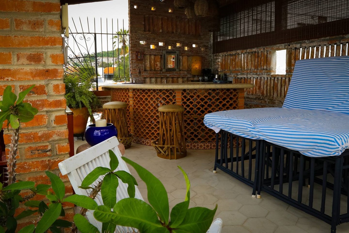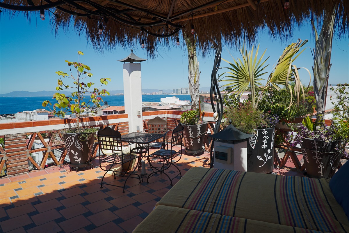 - Private covered roof top terrace with the best views of the Bay of Banderas and Old Town. Terrace includes a jetted tub, bar, and 2 lounge chairs to relax in.